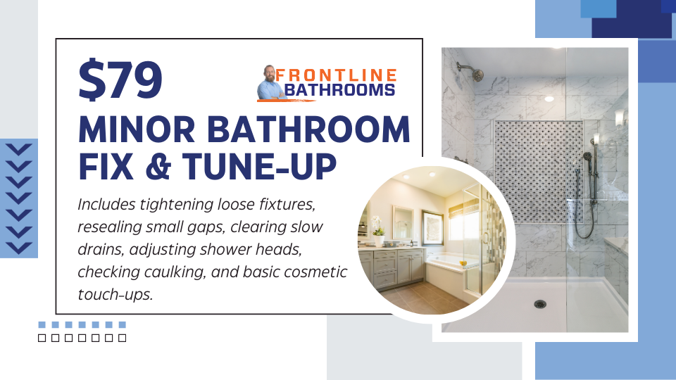 Absolutely! We don’t only do full remodels. Frontline Bathrooms also handles minor updates, fixture replacements, tile repairs, or plumbing upgrades. No project is too small, and we approach every task with the same attention to detail, professionalism, and commitment to quality as a full remodel.